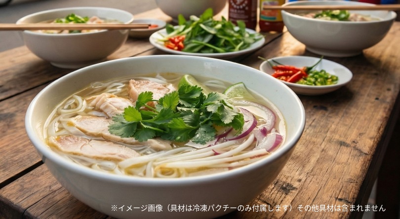 冷凍ベトナム食品ブランド「シンチャオフローズン」より、粉末スープと冷凍パクチーが付属した「冷凍 ベトナムフォー鶏だしスープ味 1食」を発売しました。