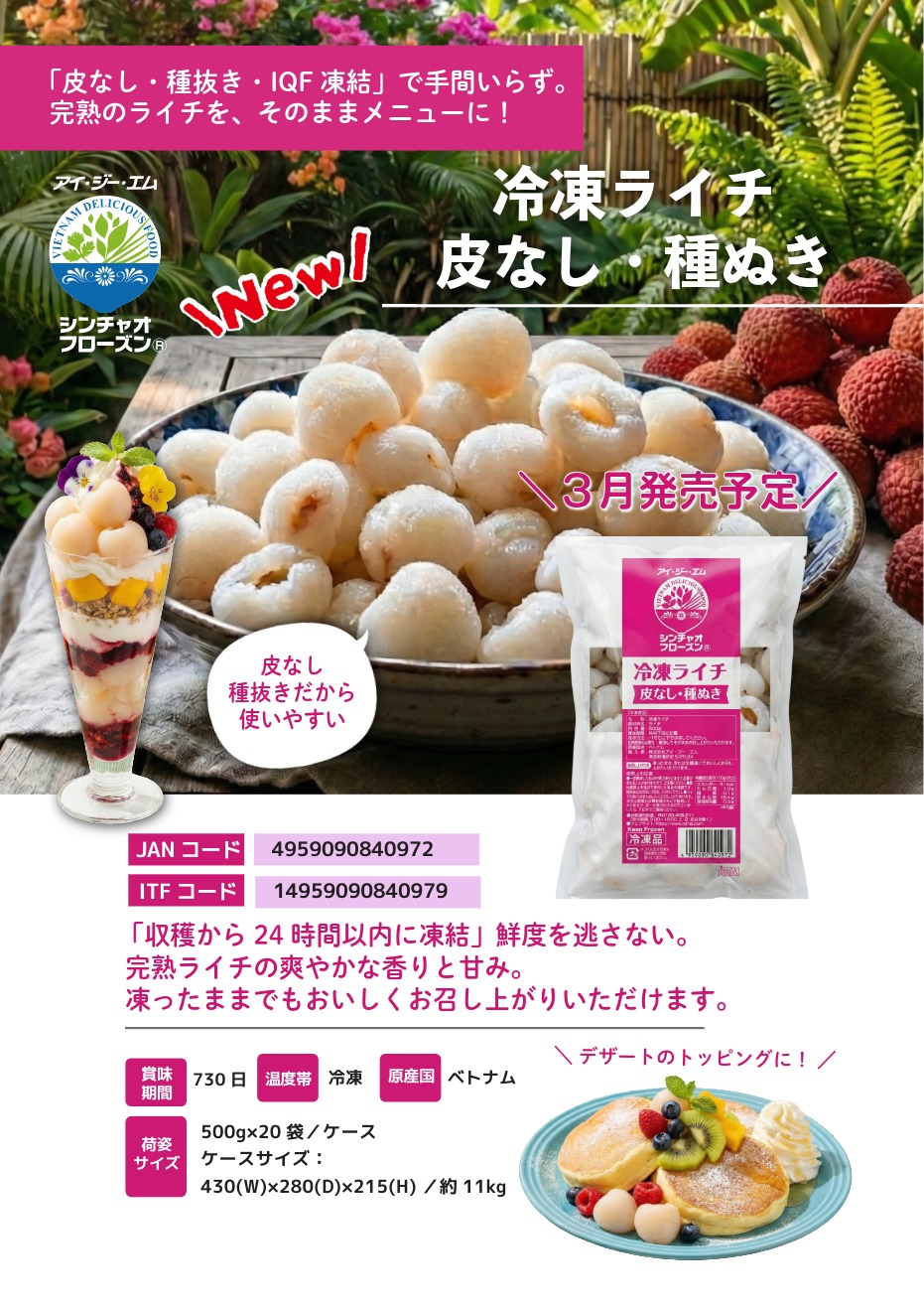 完熟の甘みを贅沢にパクッ!皮なし・種なしの楽々な「冷凍ライチ(皮なし・種ぬき)500g」を発売しました。