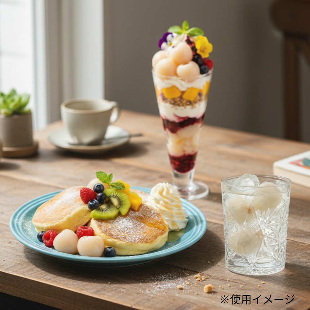 面倒な皮剥きや種の処理は一切不要で、完熟ライチの爽やかな香りと濃厚な甘みを解凍してすぐに堪能いただけます。半解凍ならシャリッと冷たく、まさに今が食べ頃! キッチンを汚さず、お皿に出すだけで贅沢なデザートタイムが始まります。
