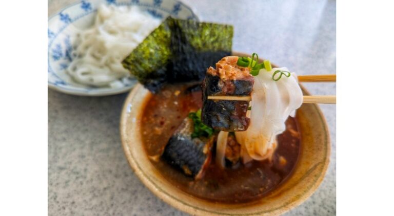 スンドゥブチゲスープとサバ缶を使った冷凍フォーのつけ麺(スンドゥブチゲスープ150gを使ったレシピ)