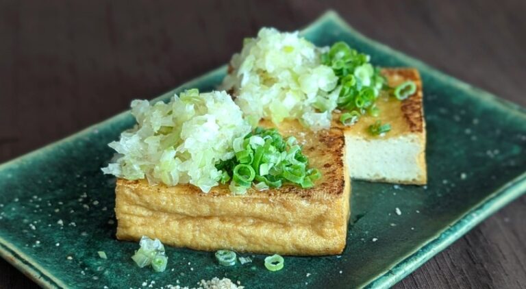 - 厚揚げは好みの大きさに切って油をひいたフライパン、中火でこんがり焼き目が付くまで焼く。